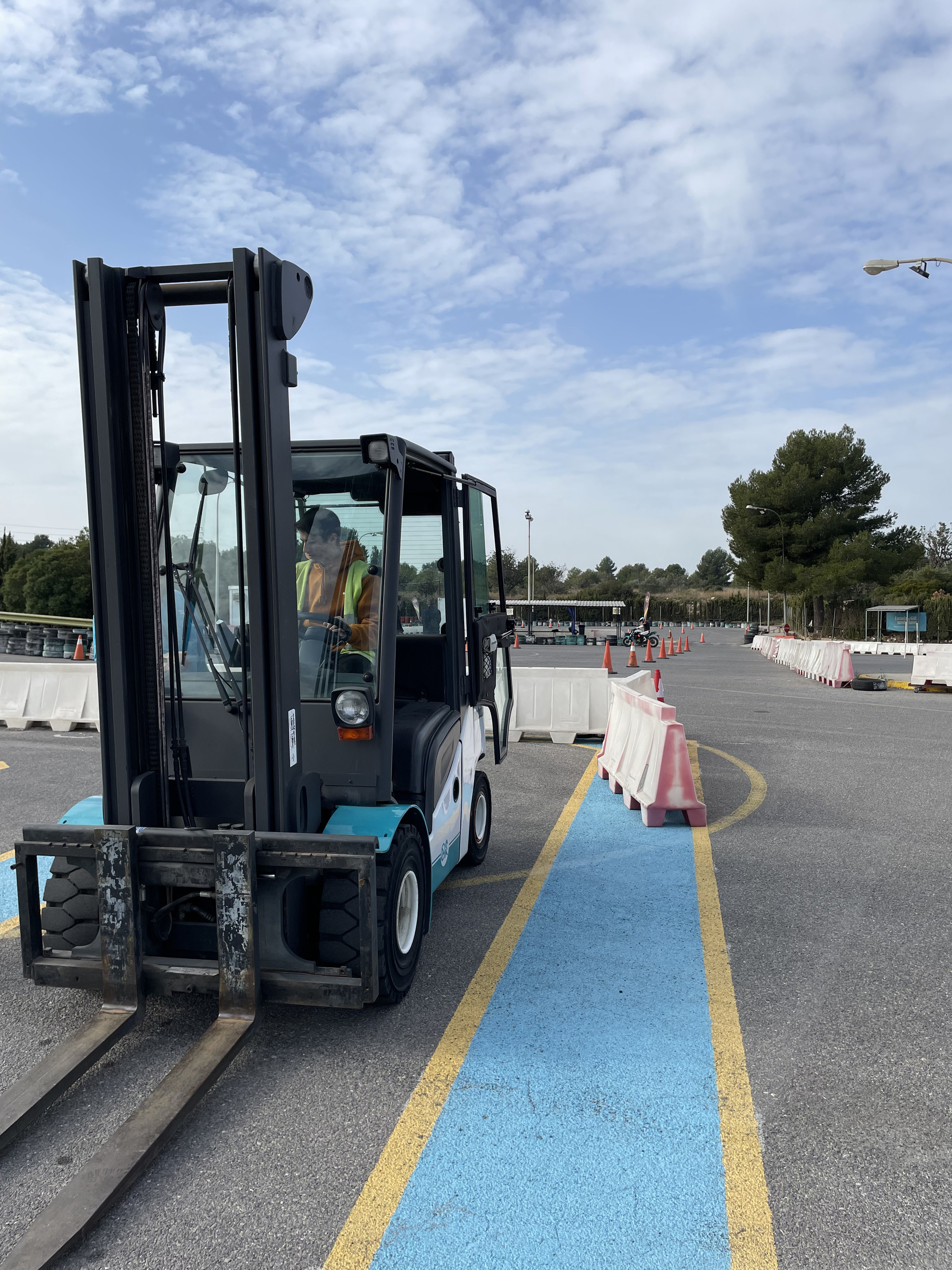 Tampoco podrá incorporarse a la vía pública, donde el carretillero debe conocer las normas de circulación. Si el trabajo se realiza fuera del recinto privado, además de disponer del permiso de conducir B, está obligado a acotar la zona de trabajo con unos conos o vallas y el vehículo debe ir equipado con las luces y la matrícula de vehículo especial.